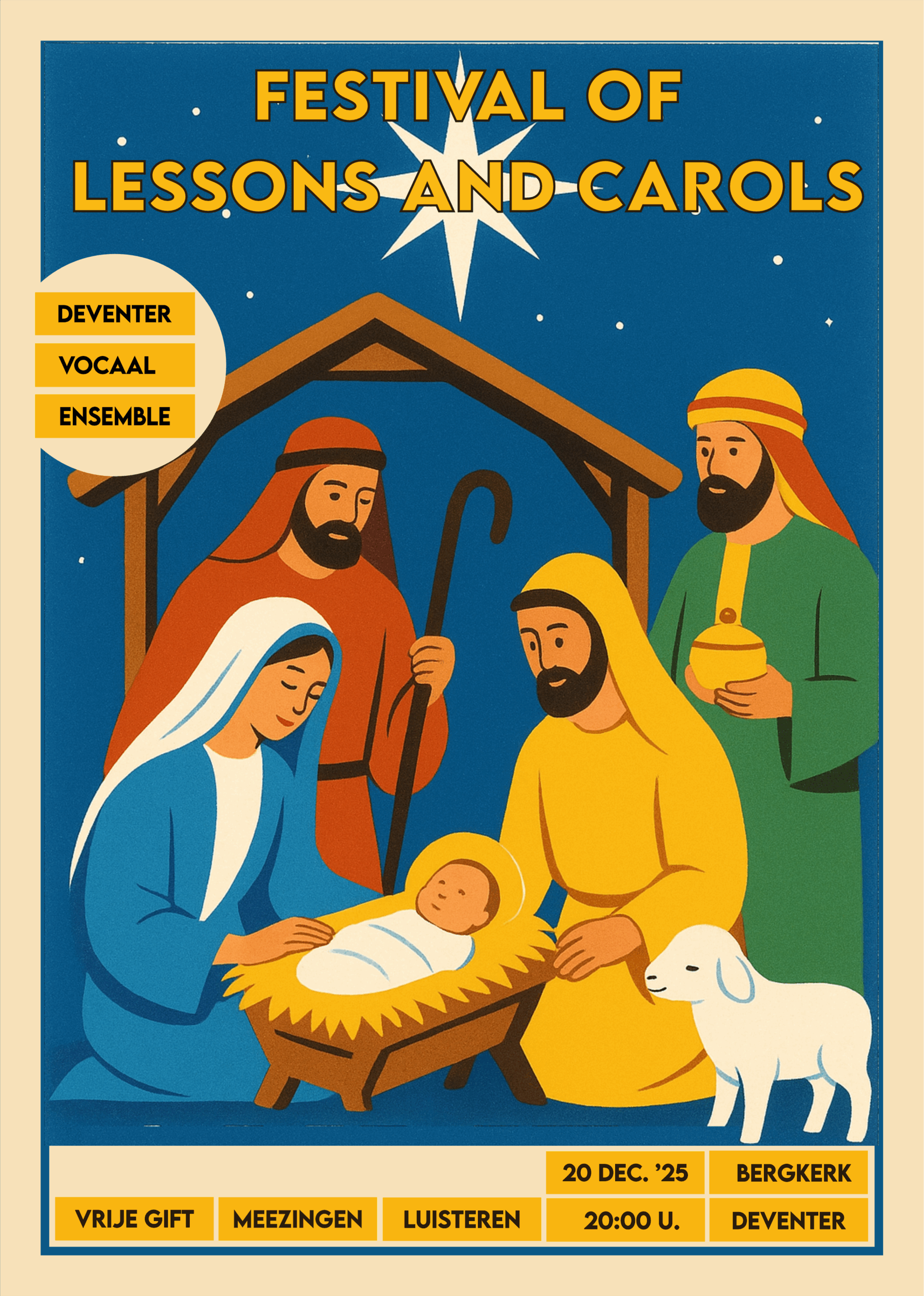 Naast onze jaarlijkse deelname aan het Deventerse Dickens festijn (13-14 december), voeren we ook dit jaar met Kerst weer het traditionele “Festival of Lessons and Carols” uit.