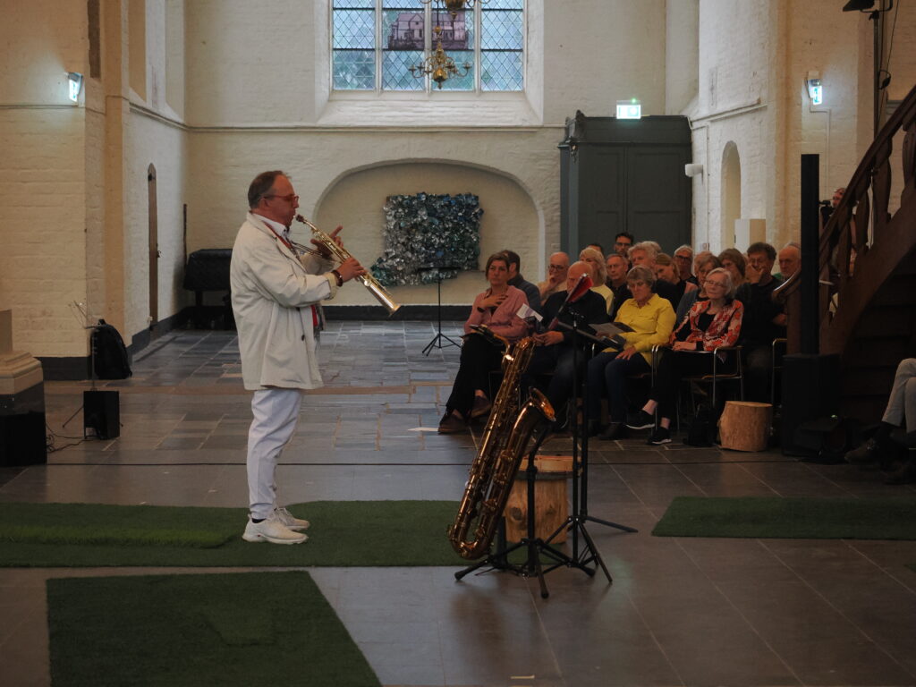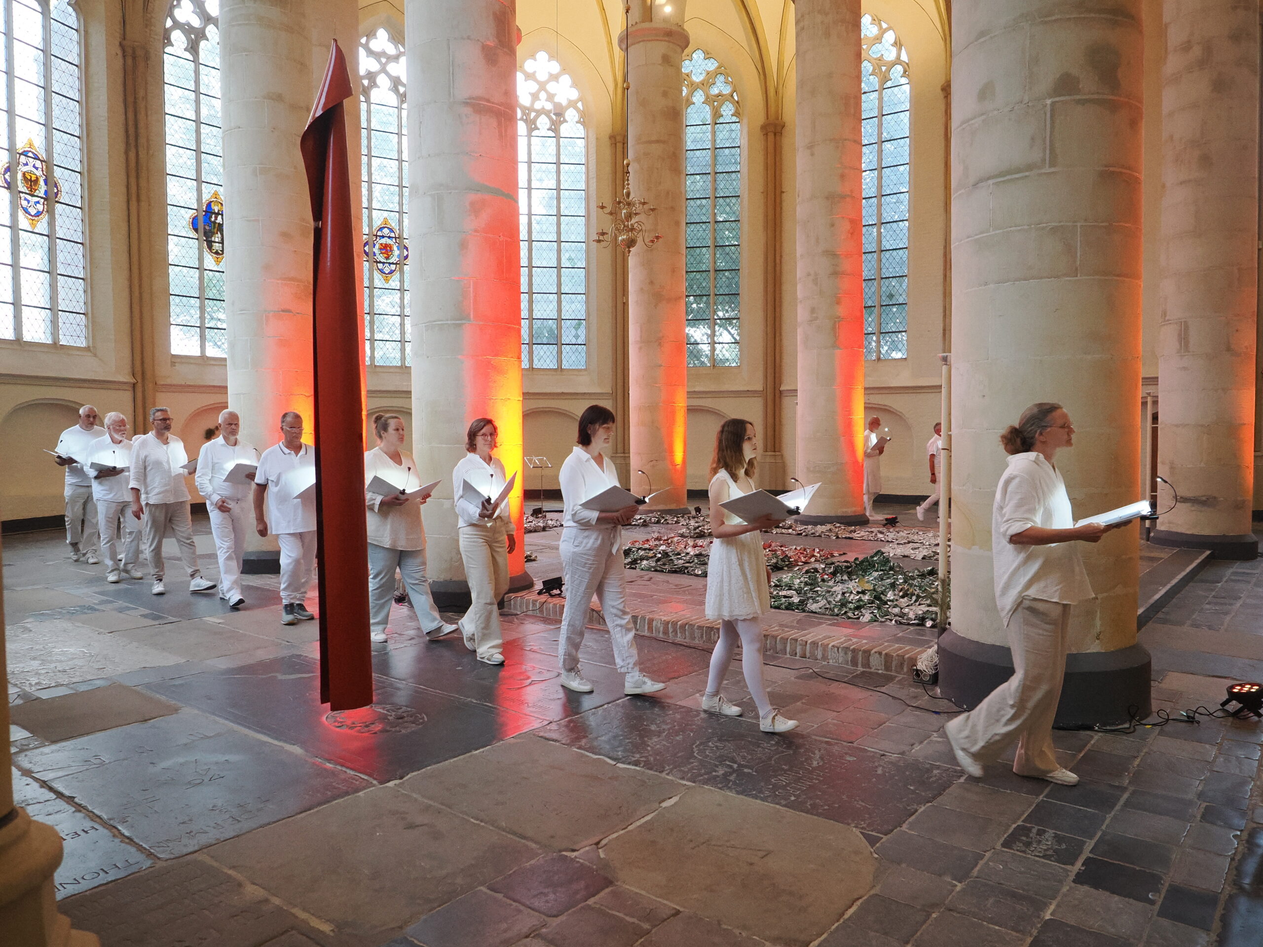 We zijn supertrots op ons concert “Het broze paradijs” van 24 mei 2024 in de Bergkerk in Deventer. In drie onderdelen bezongen we tussen de kunst van Sibyl Heijnen onze prachtige wereld, de afbraak ervan door geweld en verontreiniging en de hoop die we hebben op verbetering. Te horen waren koorstukken van diverse componisten uit alle tijden, onder andere de romantische ‘Songs of Nature‘ van Dvorak, het heftige ‘Curse upon Iron‘ van Veljo Tormis en het drieluik ‘Cry!‘ (schreeuw en huil in één), gecomponeerd en begeleid op saxofoon door Johan van der Linden. Dit laatste stuk is speciaal voor dit concert gecomponeerd en vormt een terugkerend element in de drie delen van het concert: schoonheid, afbraak, hoop. De programmafolder die werd uitgedeeld bij de ingang vindt u vindt u hier en de liedteksten hier.